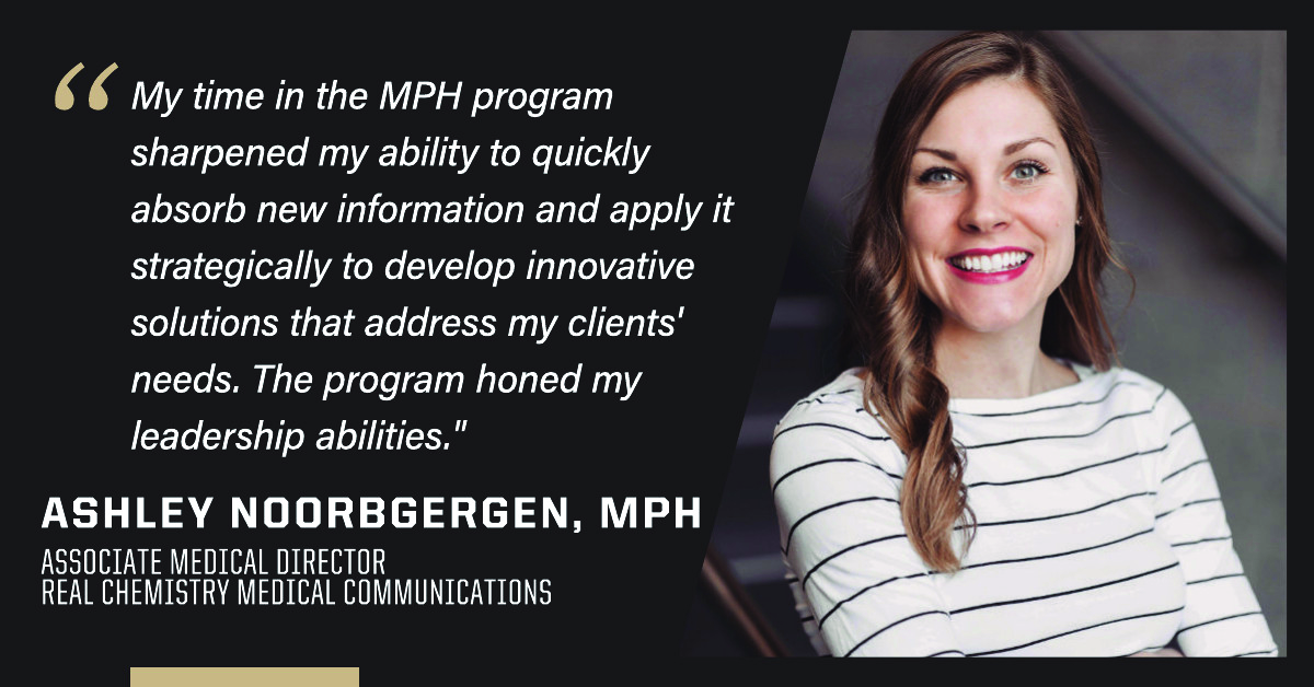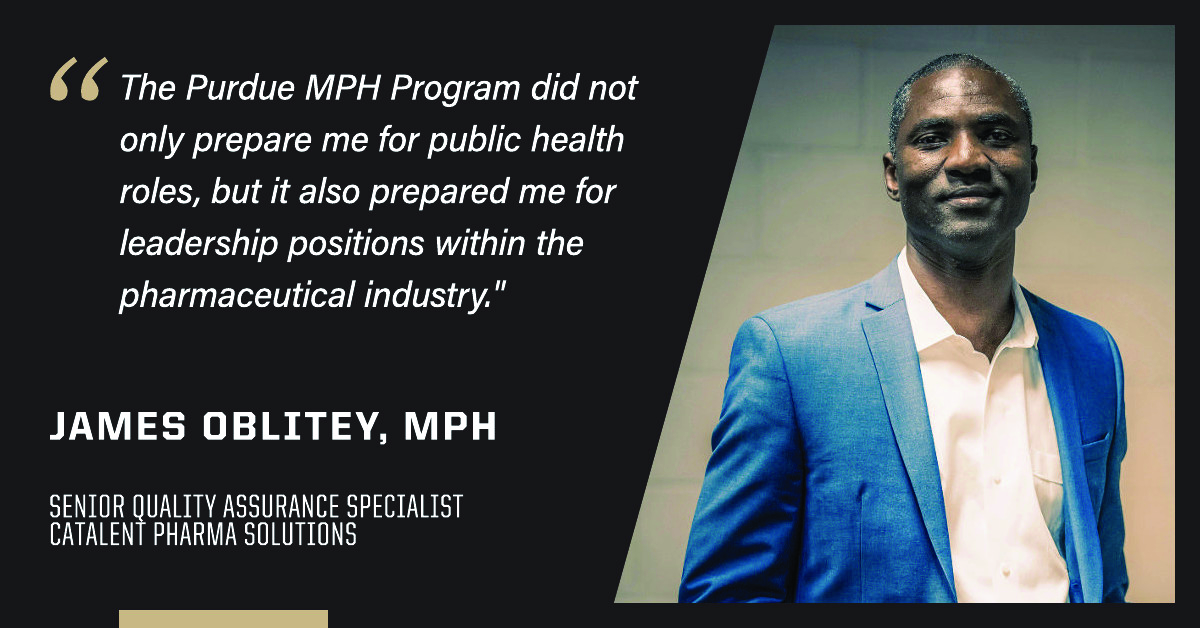 Purdue’s MPH alumni take on a variety of leadership positions at local, state and federal health agencies. Many more step into management roles within nonprofit and private organizations and develop community outreach programs for healthcare systems. Others provide data analytics support to health insurance companies. An MPH is a highly versatile degree with transferable skills applicable in a host of nonprofit, private, university, healthcare and government settings.